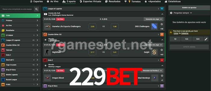 O 229bet oferece uma grande seleção de opções de apostas em e-sports com probabilidades competitivas